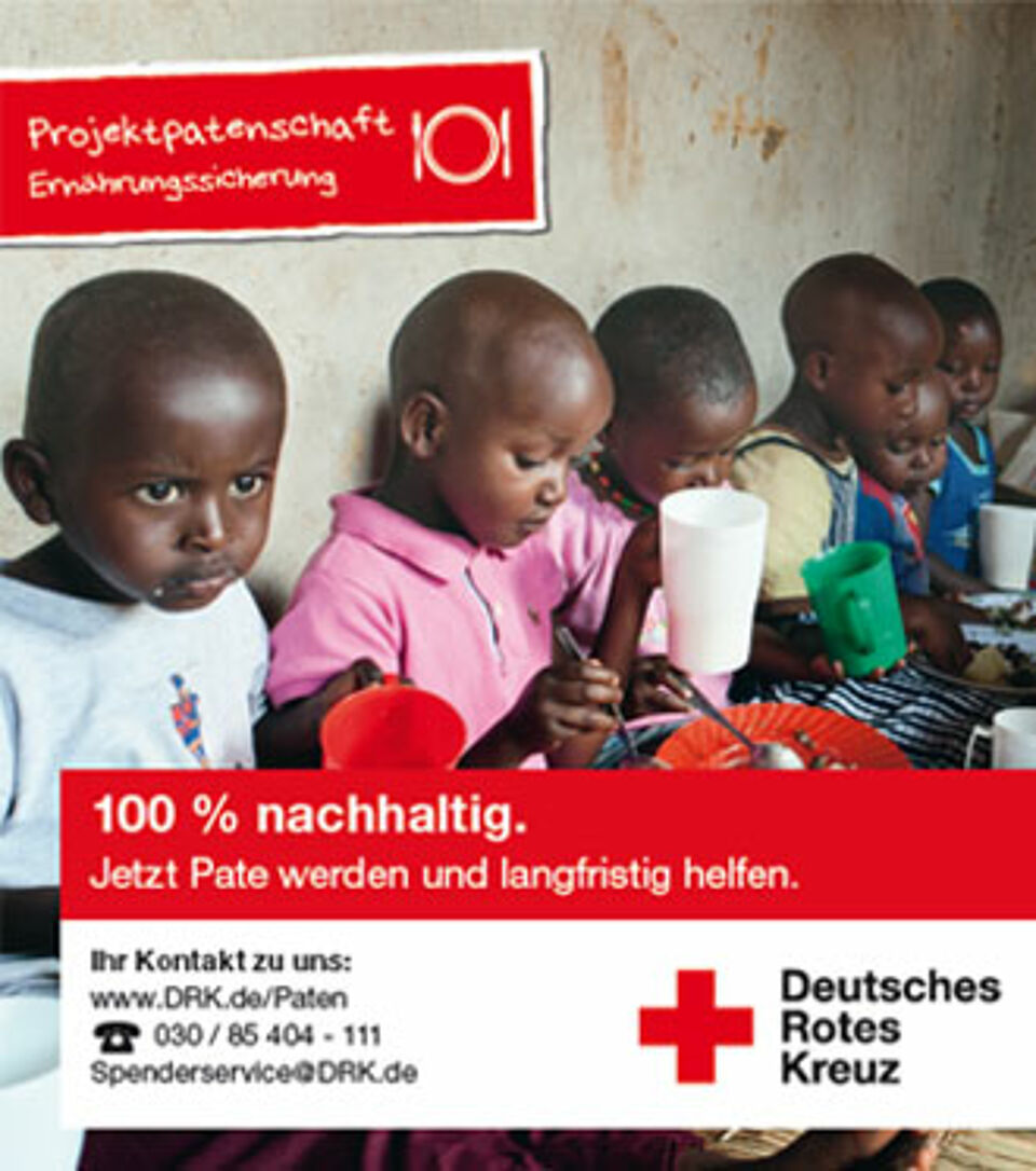 Um die vielfältigen Aufgaben des Deutschen Roten Kreuzes bewältigen zu können, sind wir auf die Unterstützung vieler Menschen angewiesen - und auf die Mithilfe der Medien, diese Menschen etwa durch die Schaltung einer Anzeige des DRK zu motivieren.